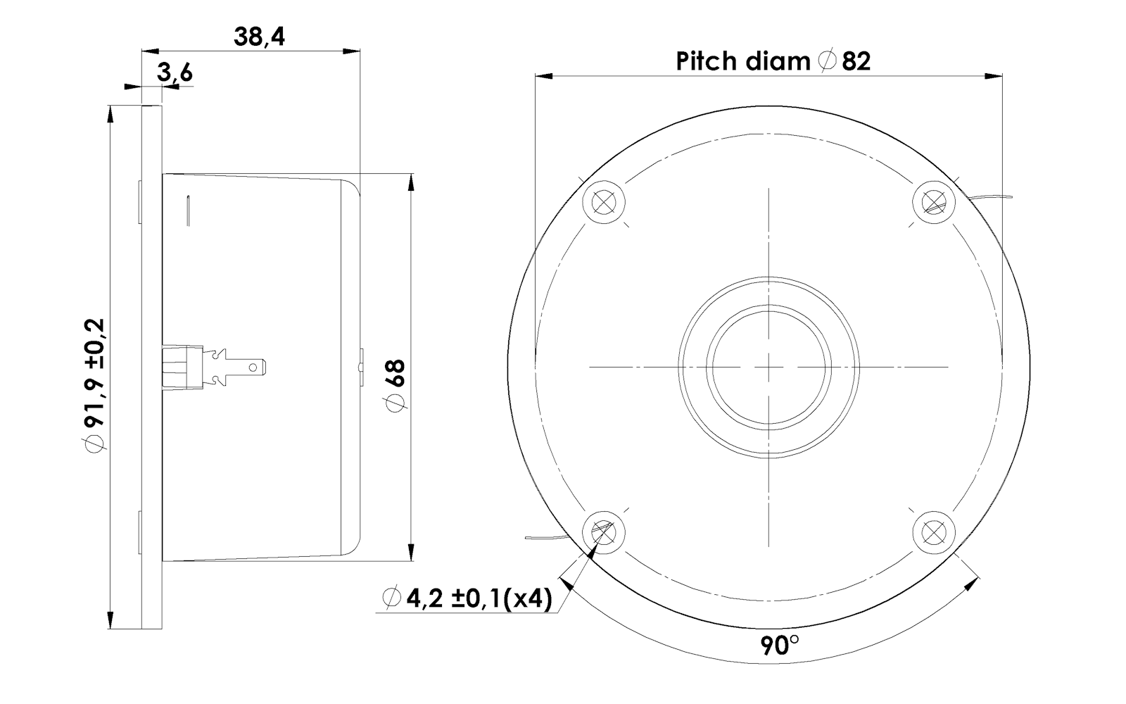 Classic ¾″ soft dome tweter with wide dispersion.