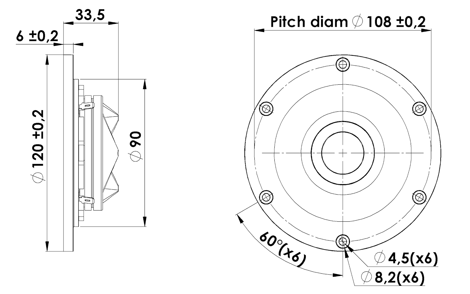 High temperature voice coil (Ø26 mm) is wound on titanium coil former. Scan-Speak Revelator D2908/716000 features also with patented symmetrical drive (SD-2) motor with AirCirc magnet system, non-resonant aluminium rear chamber and 120 mm black anodized aluminium faceplate.
