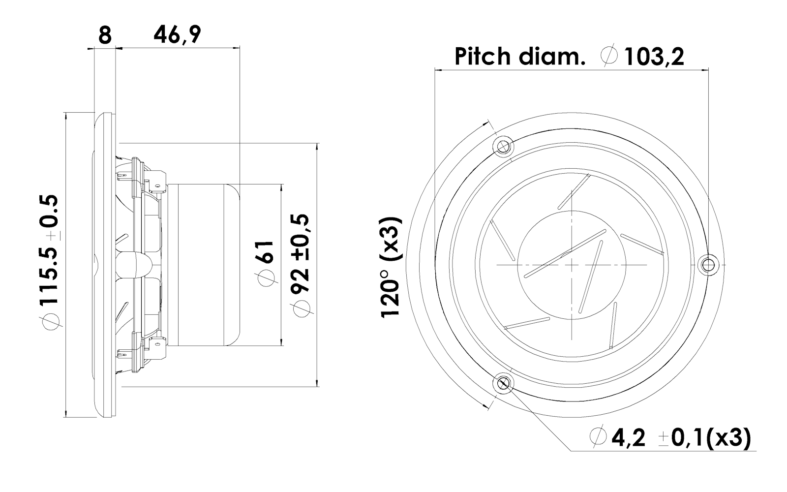 The Revelator midranges are well known for their sliced paper cone technology. The slices are filled with damping glue, which dramatically reduces break-up modes in the diaphragm. In combination with Scan-Speaks low-loss linear suspension it represented a breakthrough in midrange clarity and overall smooth frequency response characteristics.