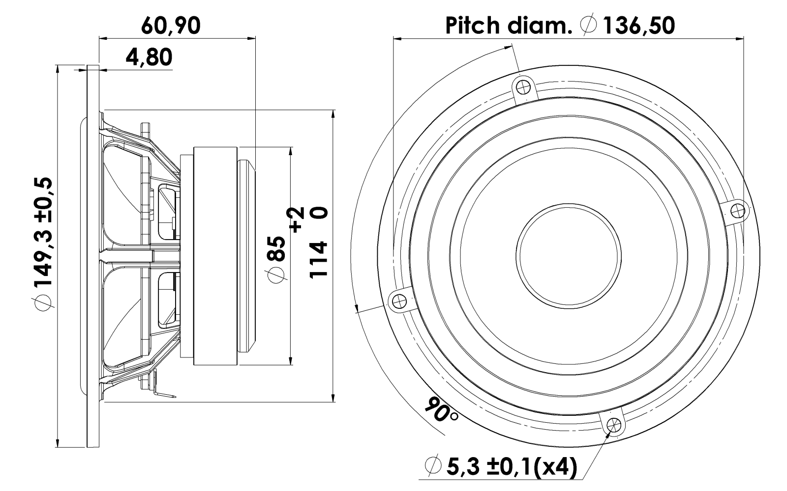 15cm Midwoofer 4ohm, Coated Fiberglass Cone, Ferrite Magnet