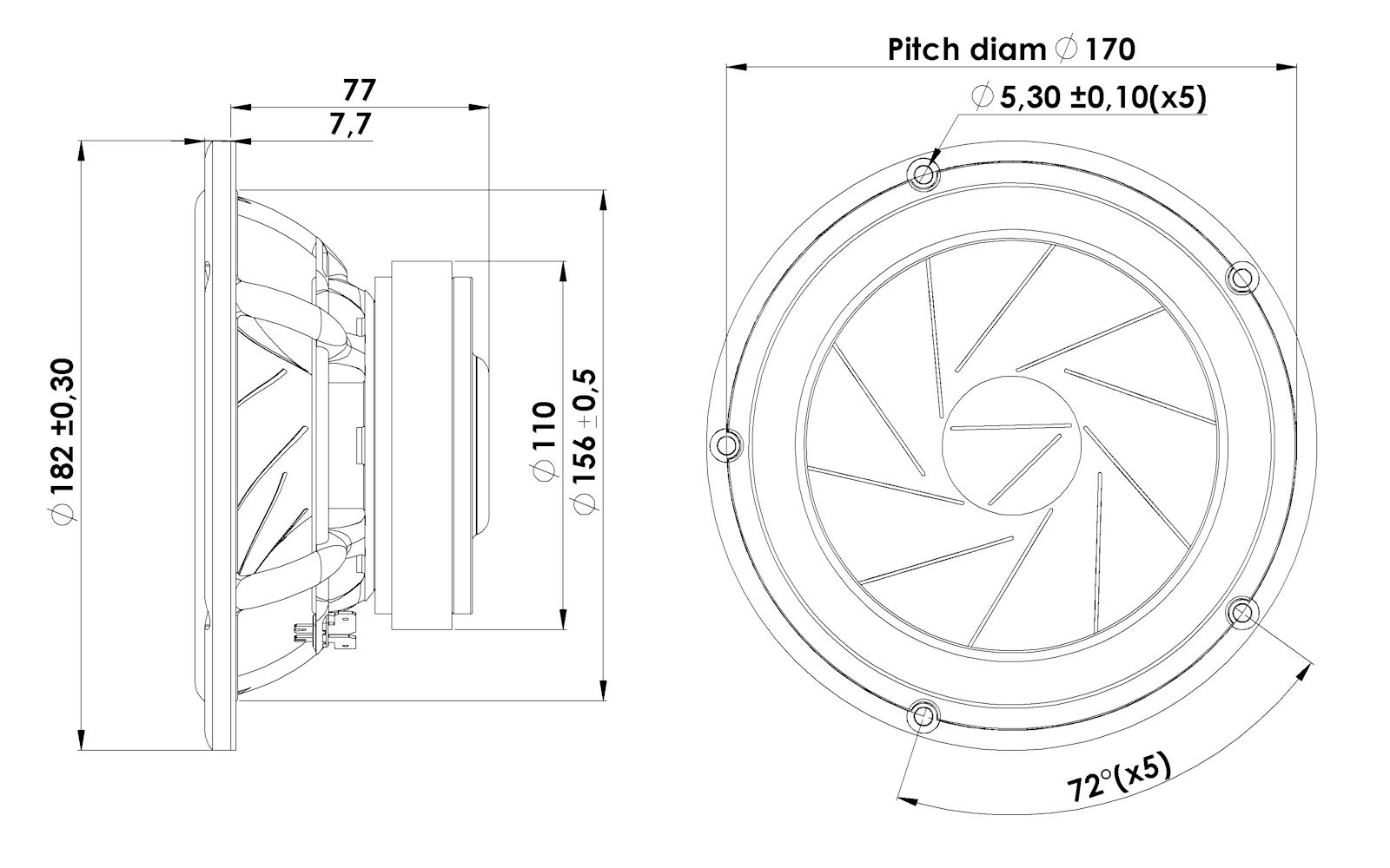 18cm Midrange 4ohm, Sliced Paper Cone, Large Ferrite Magnet