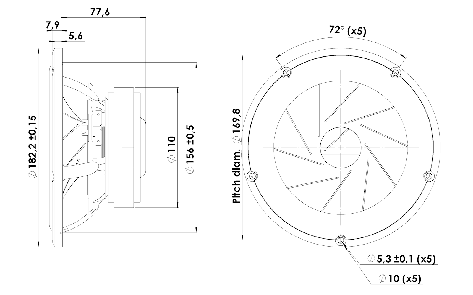 18cm Midwoofer 4ohm, Sliced Woodfibre Cone, Large Ferrite Magnet