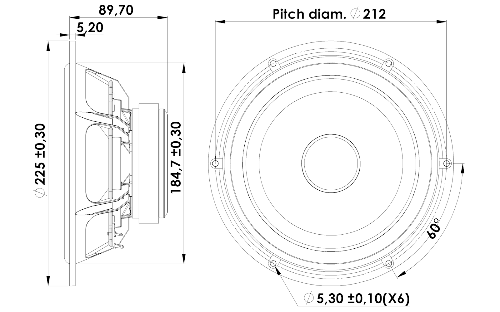22cm Woofer 4ohm, Coated Fiberglass Cone, Ferrite Magnet, Alu Ring