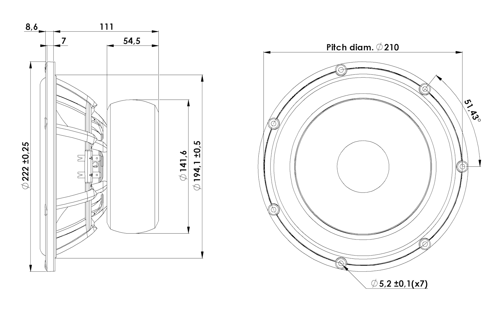 The Revelator woofers and subwoofers features very rigid cones in paper or aluminium that operates as a piston over a wide frequency range, in combination with Scan-Speaks low-loss linear suspension and the patented Symmetrical Drive (SD-1) it results in very low distortion and a smooth and well behaved frequency response as well as perfect transient reproduction.