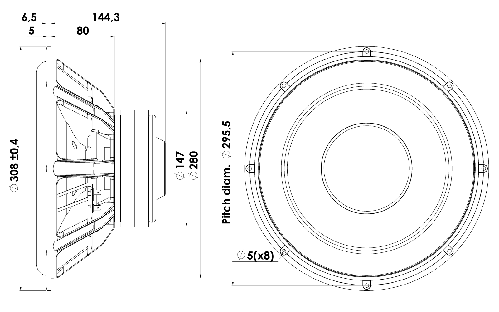 30cm Subwoofer 4ohm, Alu Cone, Double Ferrite Magnet