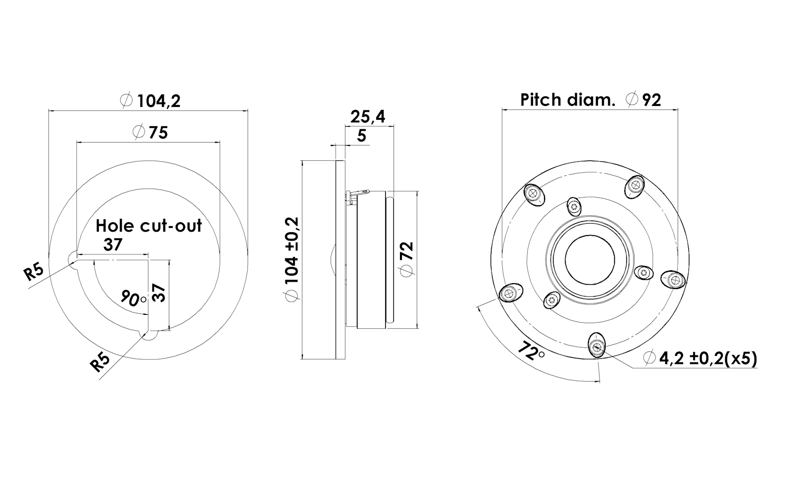 26mm Dome Tweeter 4ohm, Ferrite Magnet, Wide Surround