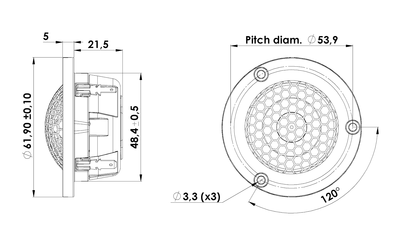 26mm Ring Radiator 4ohm, Neo, Small Chamber, Grill